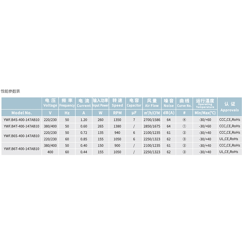 2. YWF.B4S-400-188AB10全新400系列IP54后傾離心風機F級免