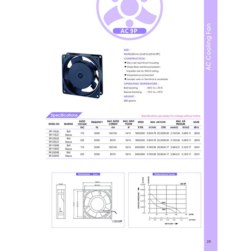 9P-230HB全系列臺灣百瑞風扇