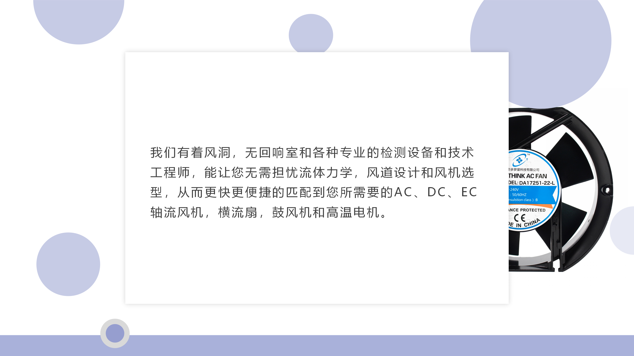 公司簡介:深圳市多羅星科技成立于2003年,位于廣東深圳,主要經營臺灣AC風機,EC風機,DC風機,風扇罩,鍍鋁板鍍鋅板不銹鋼葉輪和耐高溫定制電機,超高溫無刷電機等等。同時擁有EBM-PAPST、臺灣慣展、福佑、達盈、信灣、百瑞、三協、嶄昱等臺灣,德國,日本知名品牌的代理權。